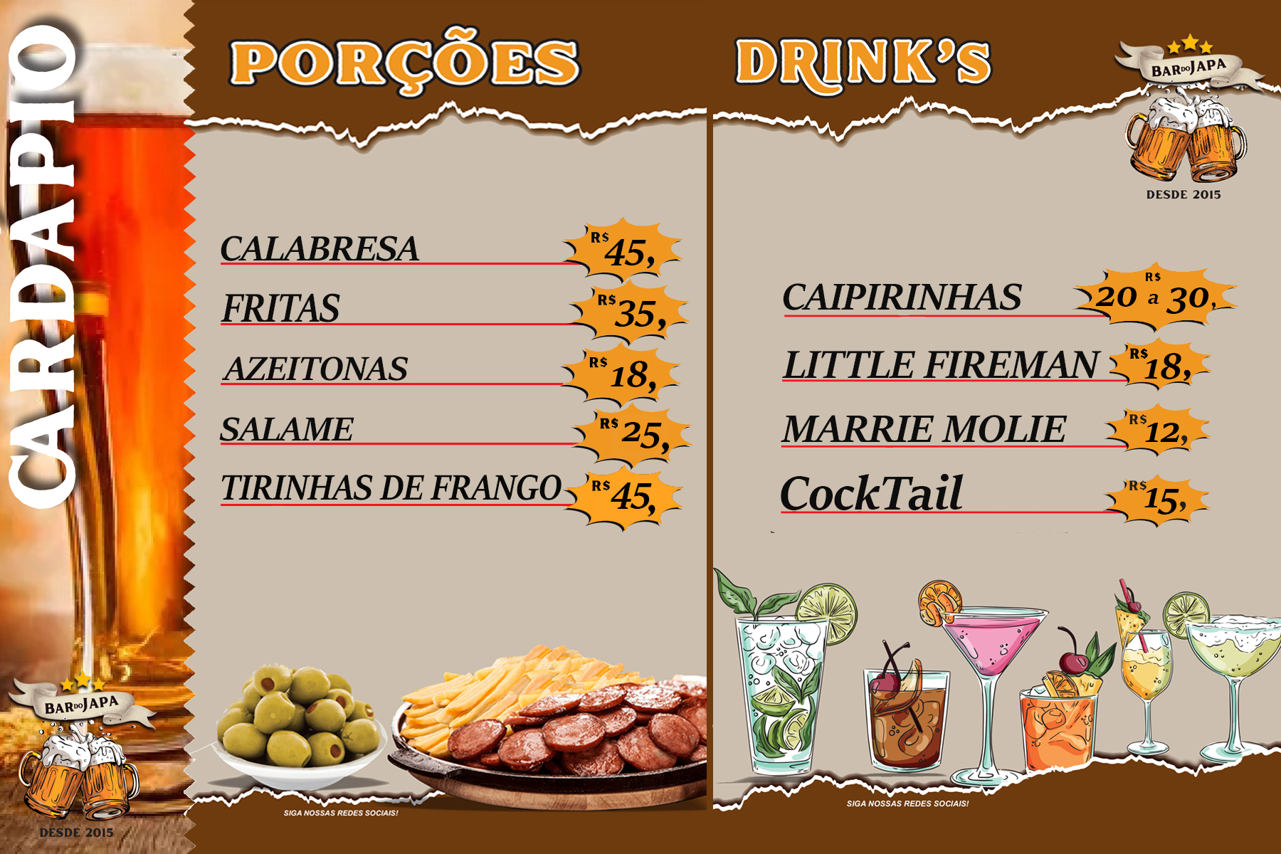 Cardápio do Bar do Japa